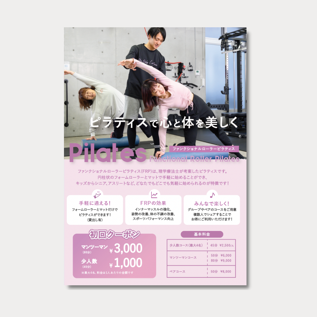 トレーニング・ピラティス・ケアの3種類になります。